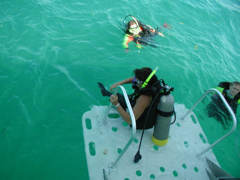 Because some of the basic scuba skills must be performed for them by a dive buddy, they are certified to dive with Two Dive Buddies, one certified Level A or above, the other assisting buddy certified at the minimum as a Rescue Diver. This assisting buddy would preferably be an HSA-certified Instructor, Assistant Instructor, DiveMaster, or Open Water DIve Buddy.